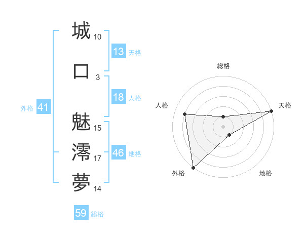城口 魅澪夢さんの外格は41画の5点!