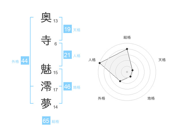 奥寺 魅澪夢さんの総格は65画の4点!