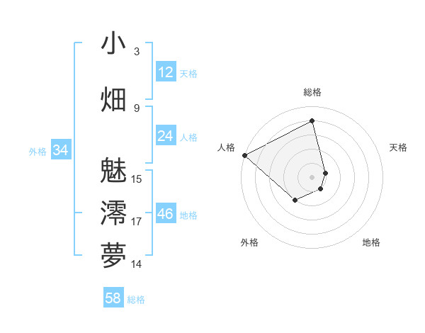 小畑 魅澪夢さんを姓名の画数から五運を鑑定