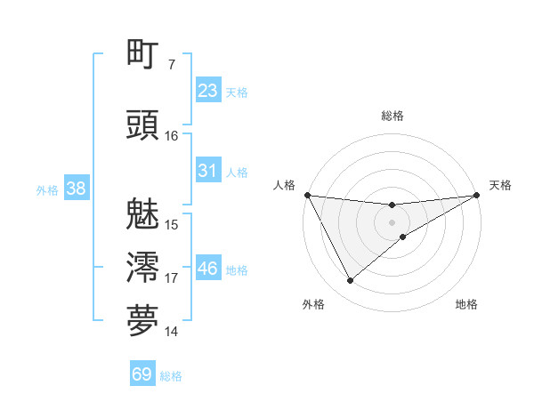 町頭 魅澪夢さんの天格は23画の5点!