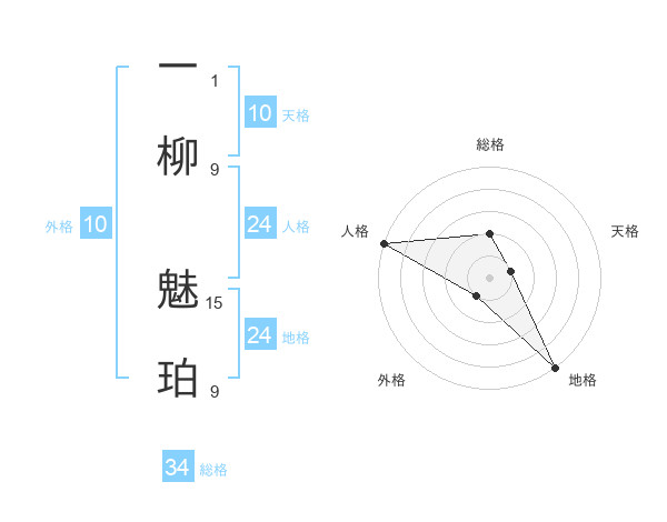 一柳 魅珀さんの総格は34画の2点!