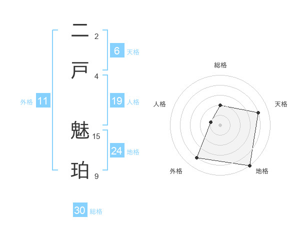 二戸 魅珀さんの総格は30画の2点!