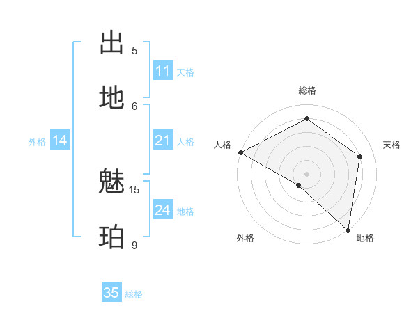 出地 魅珀さんの総格は35画の4点!
