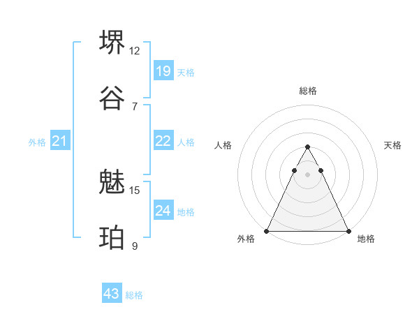 堺谷 魅珀さんを姓名の画数から五運を鑑定