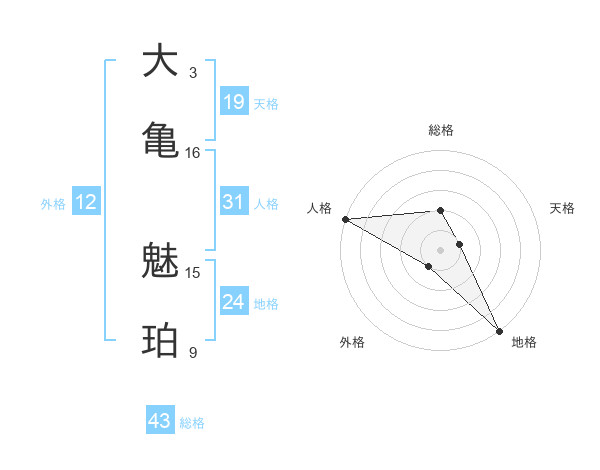 大亀 魅珀さんの総格は43画の2点!
