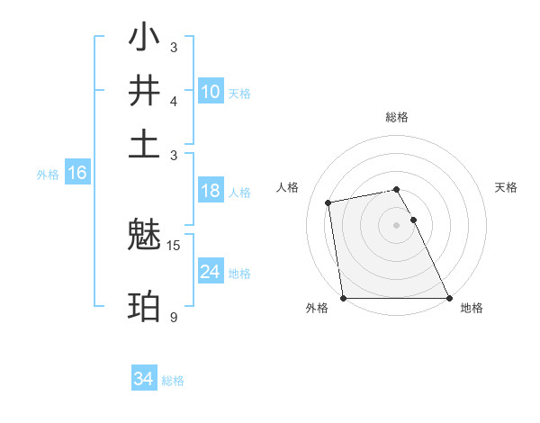 小井土 魅珀さんを姓名の画数から五運を鑑定