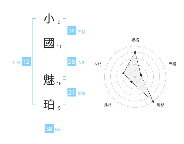 小國 魅珀さんの総格は38画の4点!