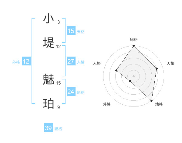 小堤 魅珀さんの総格は39画の5点!