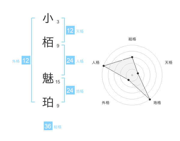 小栢 魅珀さんの外格は12画の1点!