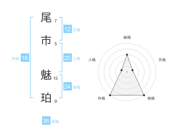 尾市 魅珀さんの外格は16画の5点!