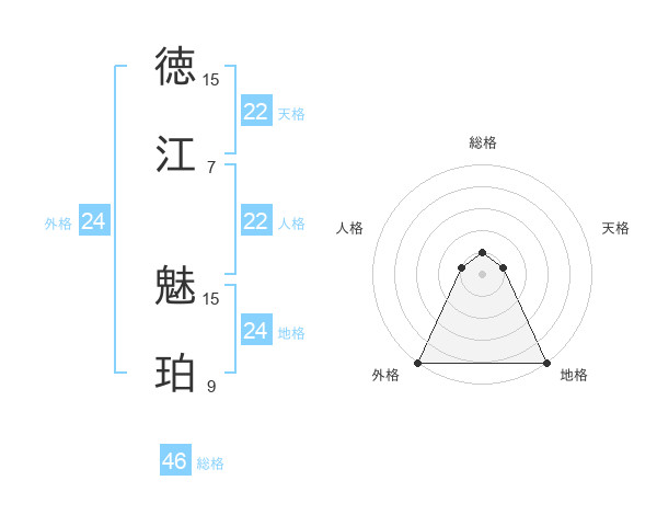 徳江 魅珀さんの地格は24画の5点!