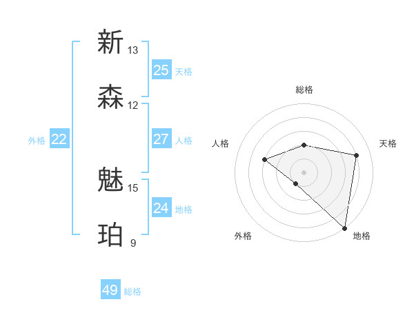 新森 魅珀さんの天格は25画の4点!