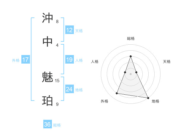 沖中 魅珀さんの総格は36画の3点!