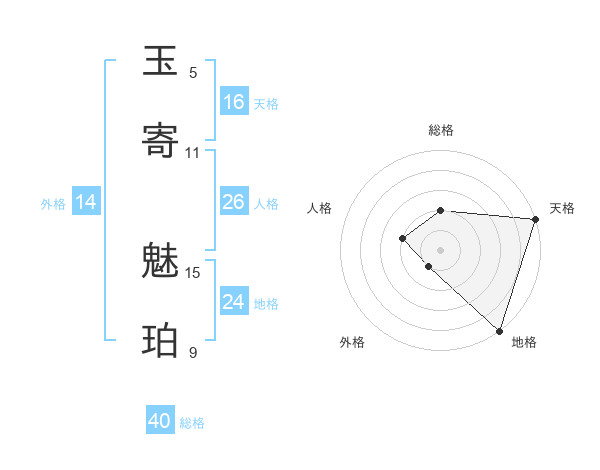 玉寄 魅珀さんを姓名の画数から五運を鑑定