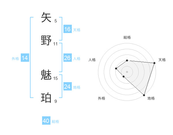 矢野 魅珀さんを姓名の画数から五運を鑑定