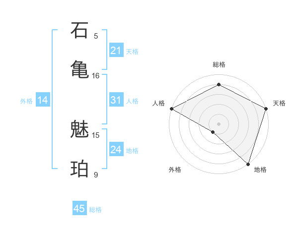 石亀 魅珀さんを姓名の画数から五運を鑑定