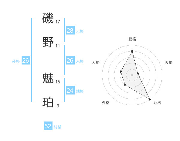 磯野 魅珀さんを姓名の画数から五運を鑑定