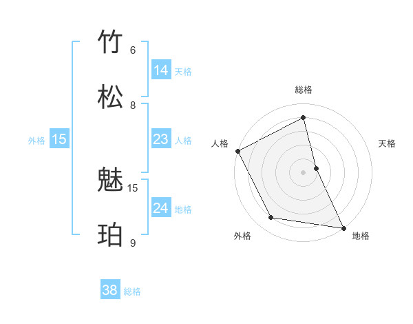 竹松 魅珀さんの総格は38画の4点!
