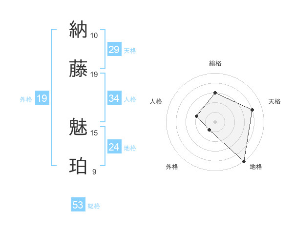 納藤 魅珀さんの総格は53画の3点!