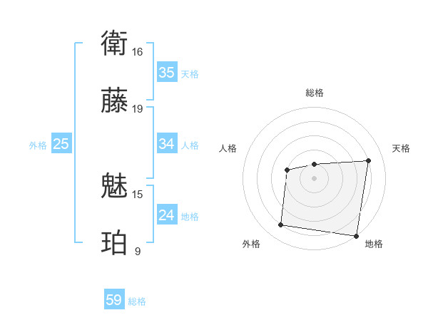衛藤 魅珀さんの総格は59画の1点!