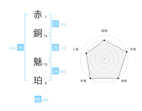 赤銅 魅珀さんの総格は45画の4点!