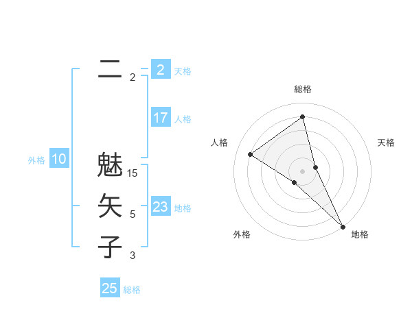 二 魅矢子さんの総格は25画の4点!