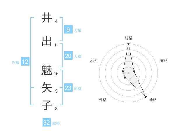 井出 魅矢子さんの総格は32画の5点!