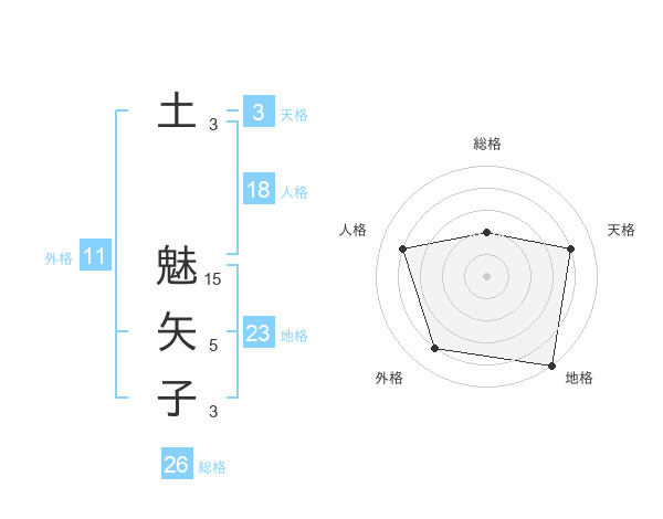 土 魅矢子さんの総格は26画の2点!