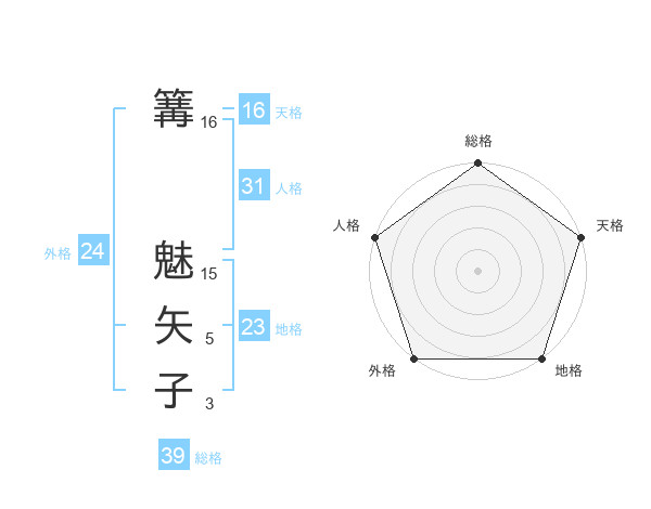 篝 魅矢子さんを姓名の画数から五運を鑑定