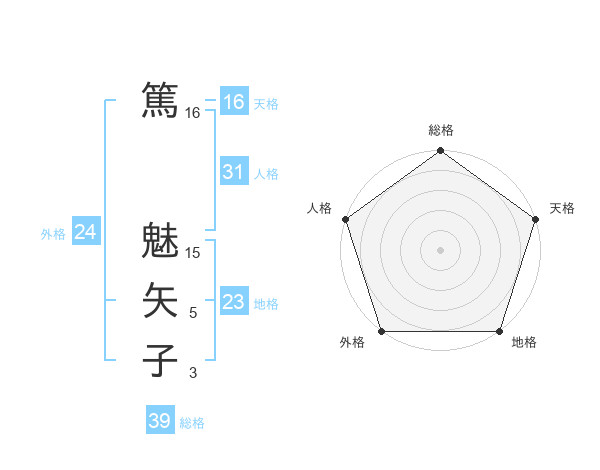 篤 魅矢子さんの総格は39画の5点!
