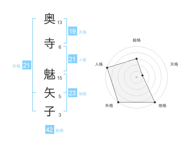 奥寺 魅矢子さんの外格は21画の5点!