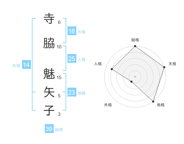 寺脇 魅矢子さんの総格は39画の5点!
