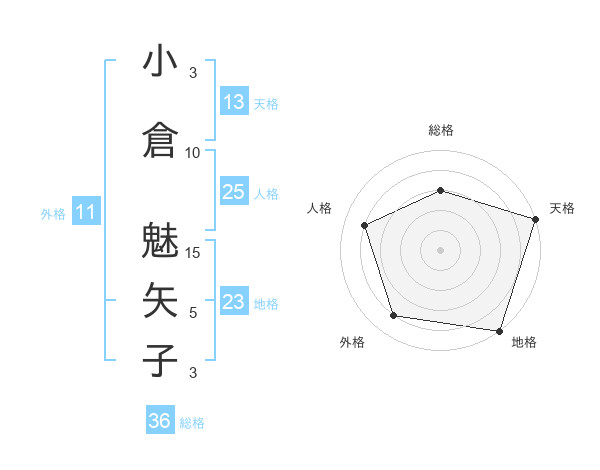 小倉 魅矢子さんを姓名の画数から五運を鑑定
