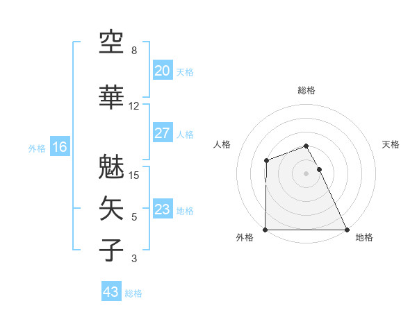 空華 魅矢子さんを姓名の画数から五運を鑑定