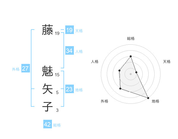 藤 魅矢子さんの総格は42画の3点!