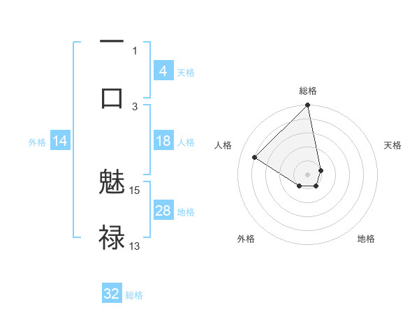 一口 魅禄さんの総格は32画の5点!