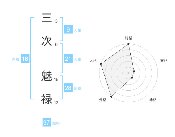 三次 魅禄さんの総格は37画の5点!