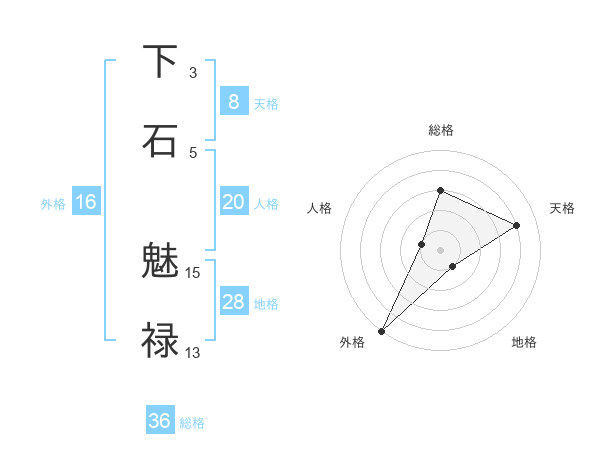 下石 魅禄さんの外格は16画の5点!
