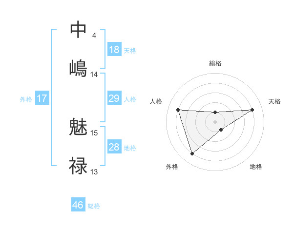 中嶋 魅禄さんの天格は18画の4点!