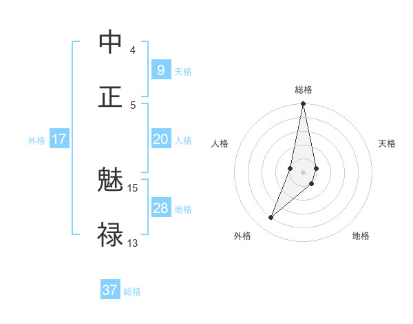 中正 魅禄さんの総格は37画の5点!