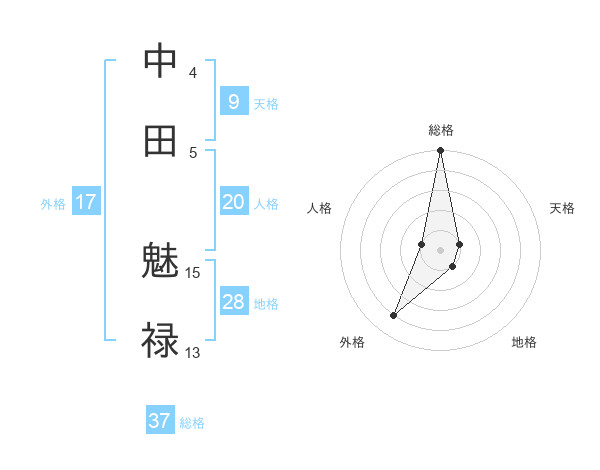 中田 魅禄さんを姓名の画数から五運を鑑定