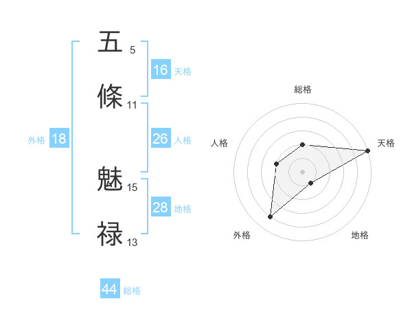 五條 魅禄さんの天格は16画の5点!