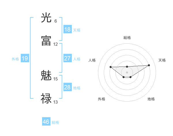 光富 魅禄さんの総格は46画の1点!