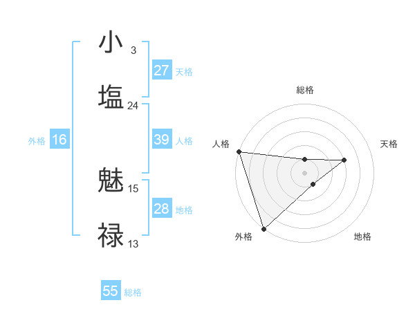 小塩 魅禄さんの総格は55画の1点!