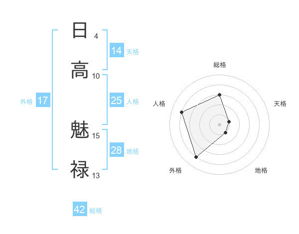 日高 魅禄さんを姓名の画数から五運を鑑定