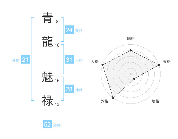 青龍 魅禄さんを姓名の画数から五運を鑑定