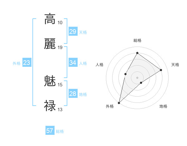 高麗 魅禄さんを姓名の画数から五運を鑑定