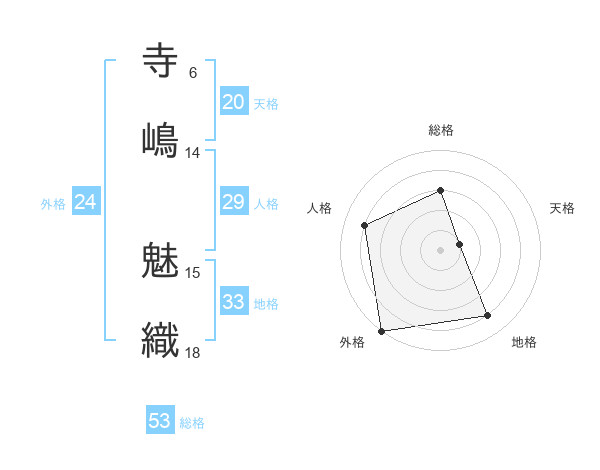 寺嶋 魅織さんの総格は53画の3点!