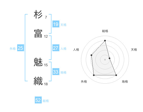 杉富 魅織さんの総格は52画の4点!
