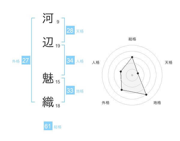 河辺 魅織さんの総格は61画の3点!